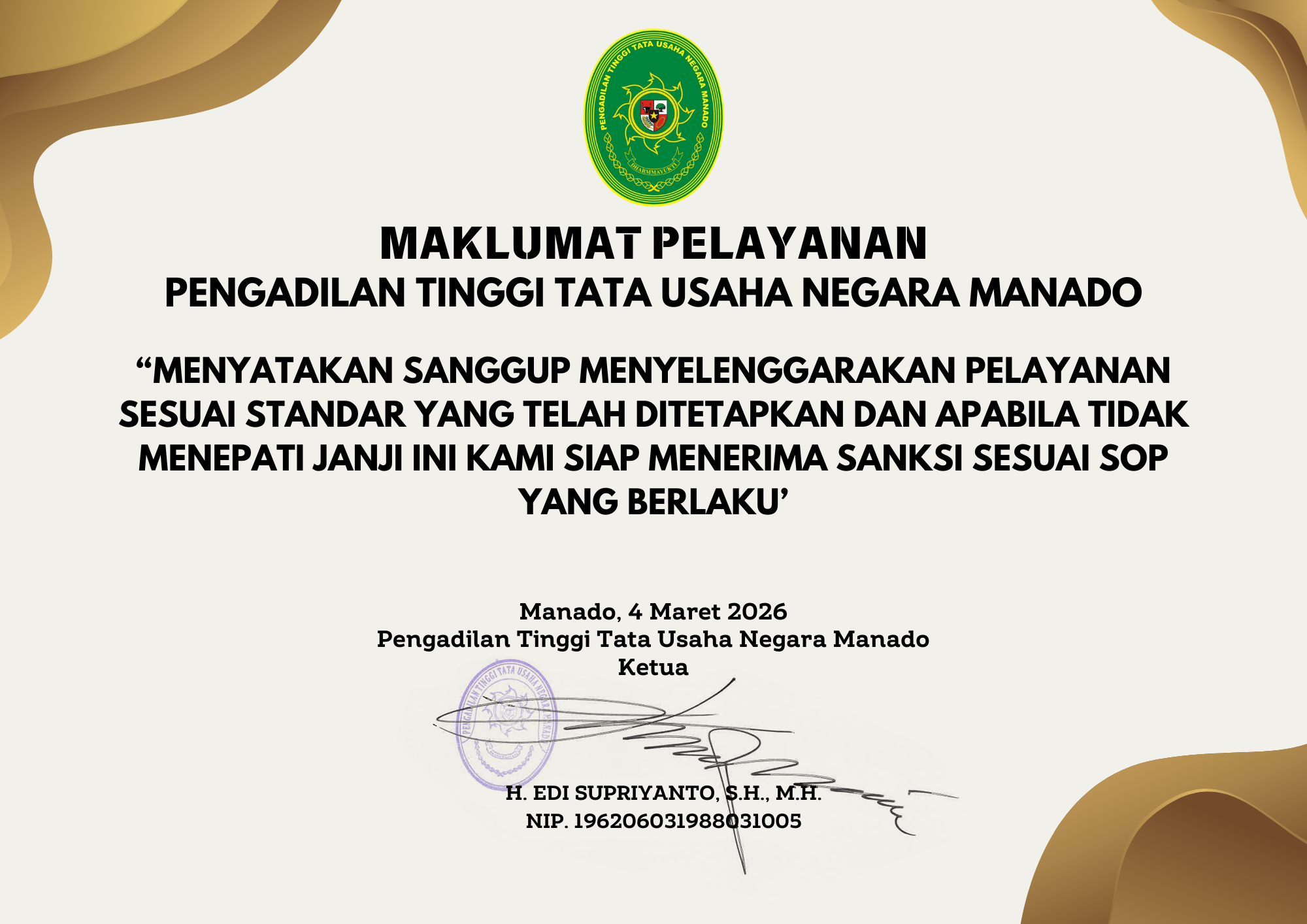 Adalah Maklumat Pelayanan Pengadilan Tinggi Tata Usaha Negara Manado